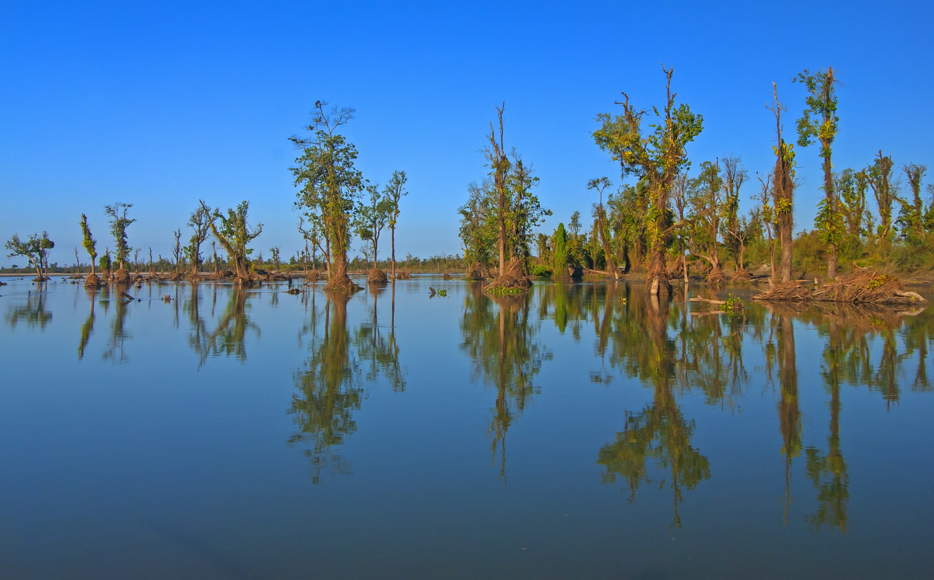 Along its course, the Brahmaputra splits and meets again resulting in several river islands across the state. These river islands are also called chaporis. The largest inhabited river island in the world — Majuli — is also created by the Brahmaputra in Assam. If the river does not change course for a few years, these islands are covered in tall grass and short trees, with swathes of soil that is trapped between their roots — giving birth to a dynamic forest.