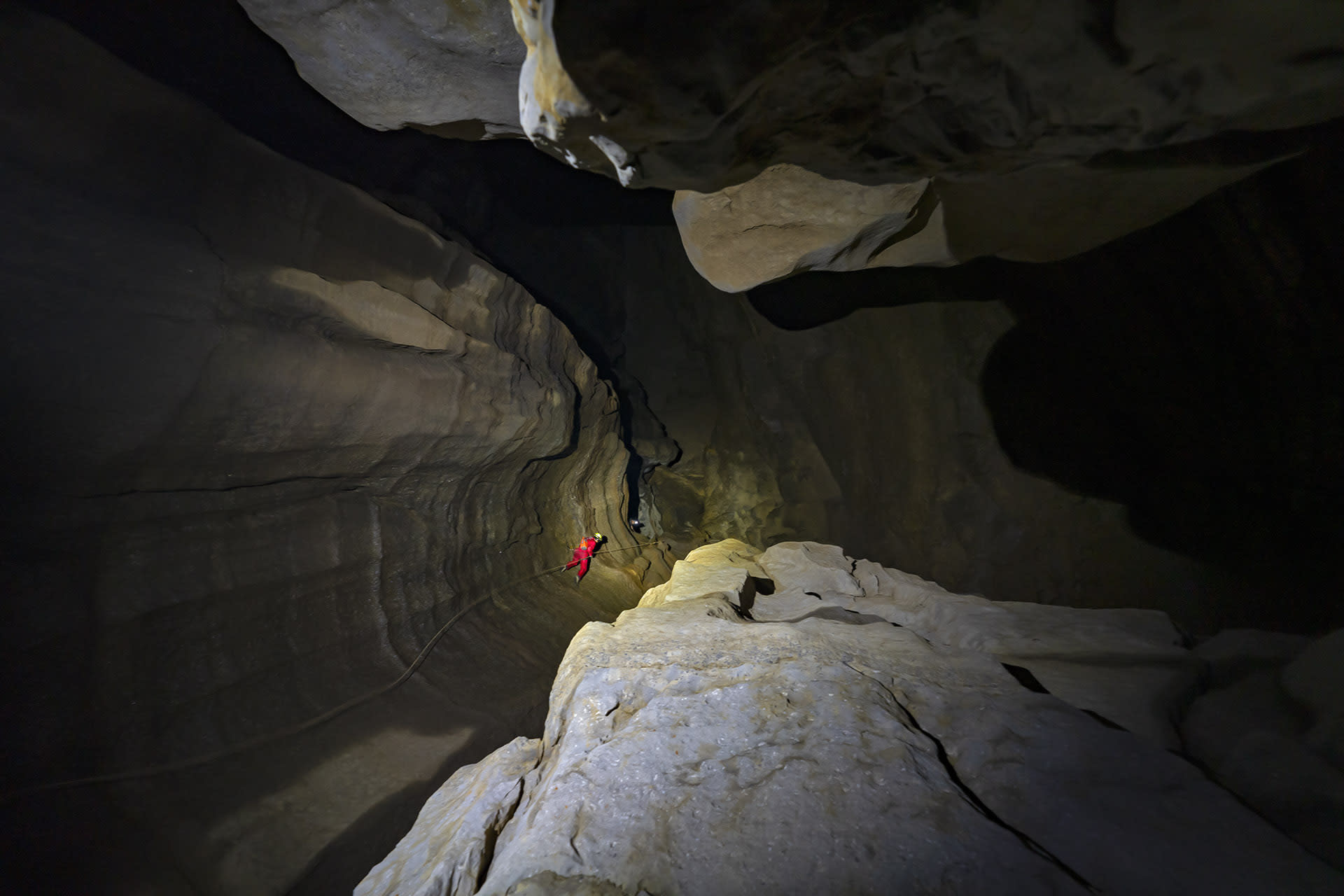 There is a surreal beauty to caves once the veil of darkness is lifted. Often hidden from human eyes in difficult-to-reach locations, witnessing them involves braving slippery slopes, belly-crawling at times through narrow passages, and wading or swimming through icy-cold, crystal clear rivers or pools of water. In river caves where there is flowing water, like the stunning Krem Chympe, we spent days exploring, water also creates stunning rimstone dams or gours. Pictured here is one of the rarer formations, that looks like a lotus, and creating waterfalls that cascade into turquoise subterranean pools.