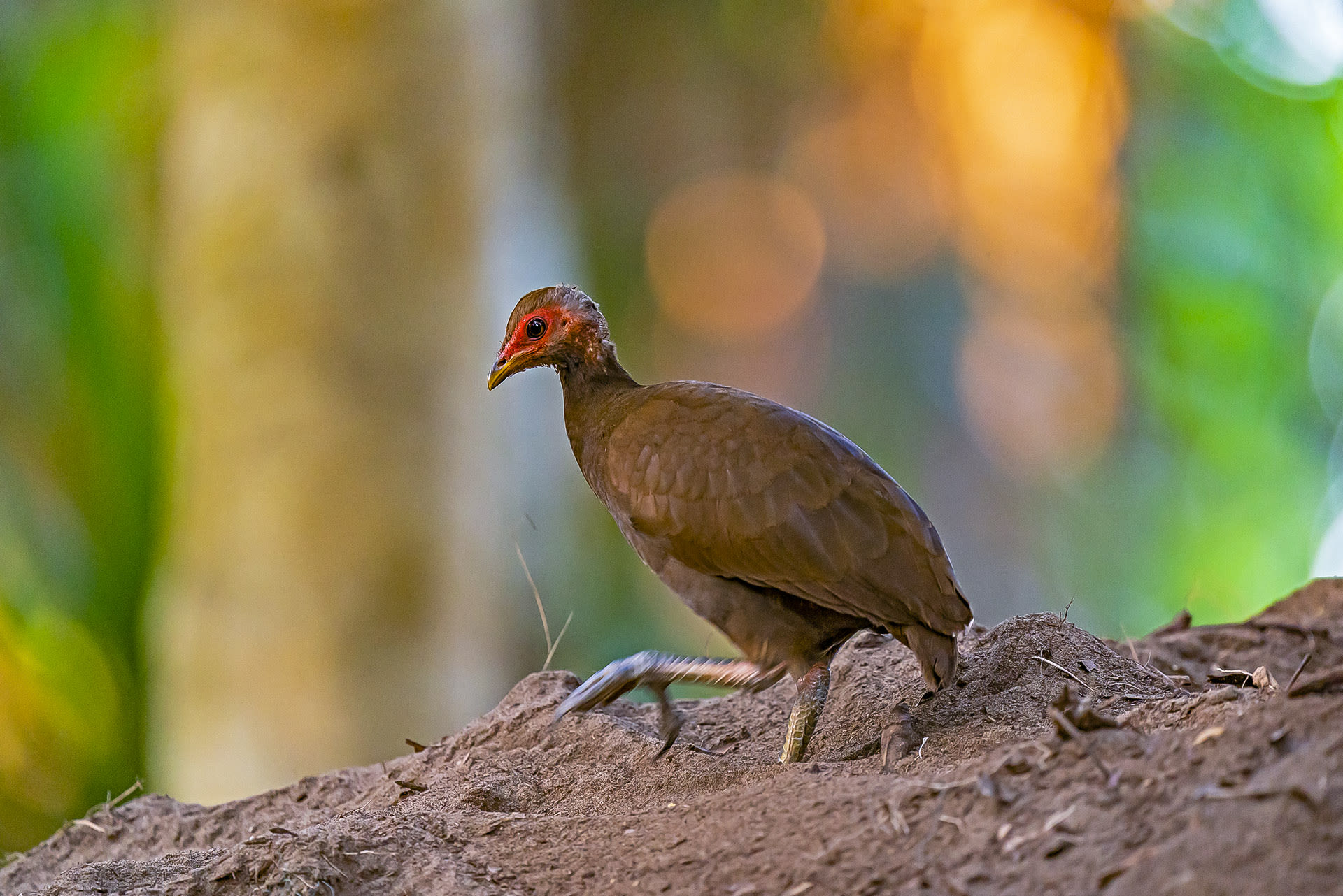 The Nicobar megapode is also called the “thermometer” bird since its large feet have sensors to test the temperature of the nests it builds on the forest floor. In the series of images above the megapode is seen surveying and digging its mound. This is often done to check on the eggs and maintain the right temperature for incubation.