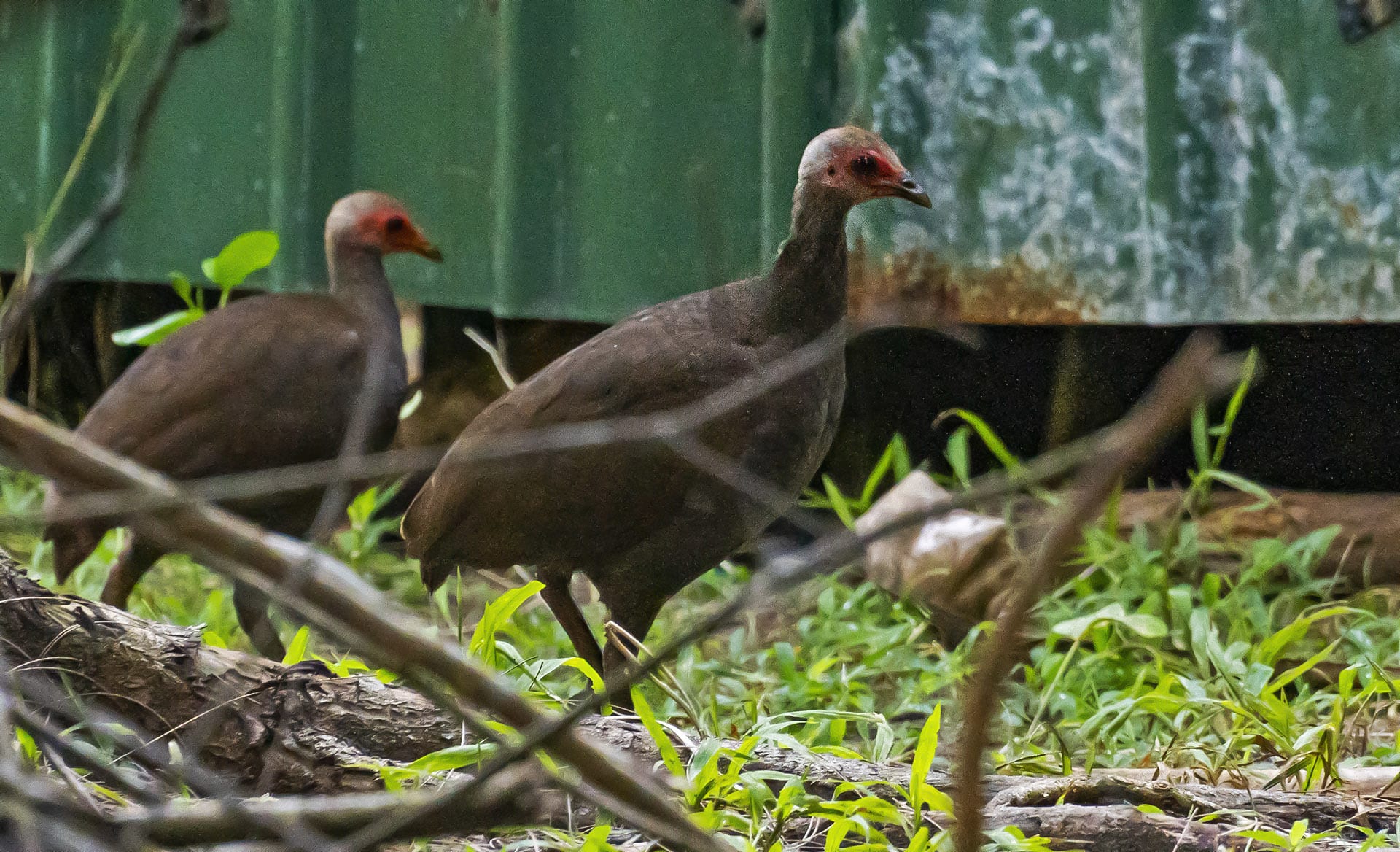 It is time to build a hide. Jugloo picks dead logs and ties them with jungle vines to create scaffolding. Coconut palm fronds make walls with natural gaps for camera lenses. Four of us squeeze in —elbows and knees sticking into each other. Four eventless hours pass. A monitor lizard known to feast on megapode eggs surveys the burrow. But no megapode.