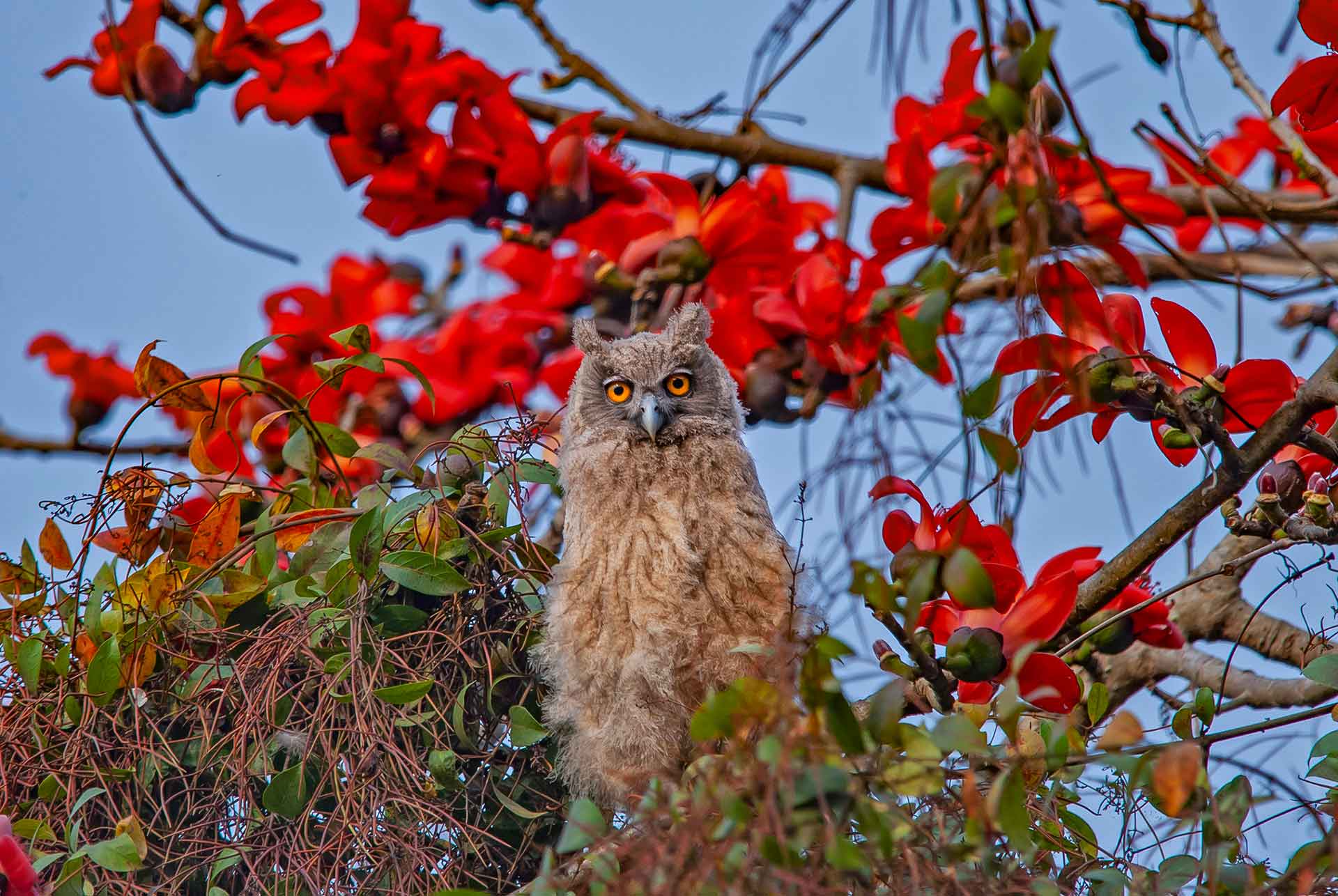 (Left) Equipped with razor-sharp talons and a hook-tipped beak, owls are one of the most efficient hunters in the avian kingdom. This dusky eagle-owl (Bubo coromandus) sits with its kill. (Right) One of the most widespread members of the barn owl family, the common barn owl (Tyto alba) , is highly adaptable and known to reside in busy metropolitan cities. Photos: Dhritiman Mukherjee (left), Saurabh Sawant (right) Cover photo: Formidable calls of nocturnal hunters (owls) often accompany the setting sun. Of the approximately 36 species present in India, the Indian eagle-owl (Bubo bengalensis) is a large horned owl species native to the subcontinent. Cover photo: Vipul Ramanuj