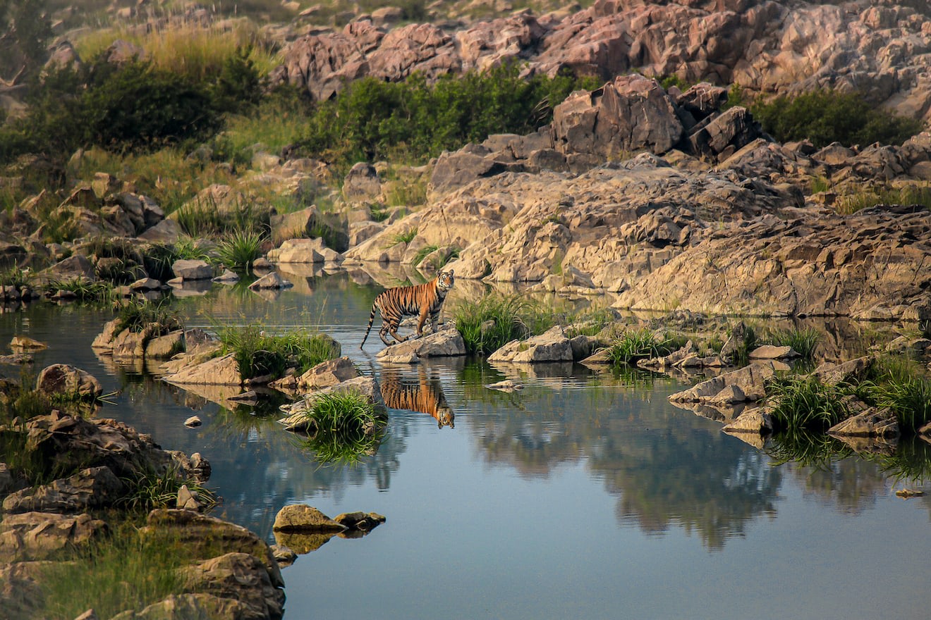 Park guides and drivers often told me sighting a tiger is commonplace in Panna every few days. An estimated tiger population of around 55 is scattered across a core area of 576.13 sq km. Even though only 20 per cent of the park area has visitor access, the territories of 3-4 tigers fall within it, while other tigers occasionally wander in. Considered both a flagship and umbrella species, the tiger is at the apex of the food chain. For it to thrive, it takes the wellbeing of an entire ecosystem. The presence of tigers is an indicator of an overall healthy forest ecosystem. In Panna’s case, the relative abundance of tigers points to a flourishing ecosystem, though it wasn’t such a happy story a decade ago.