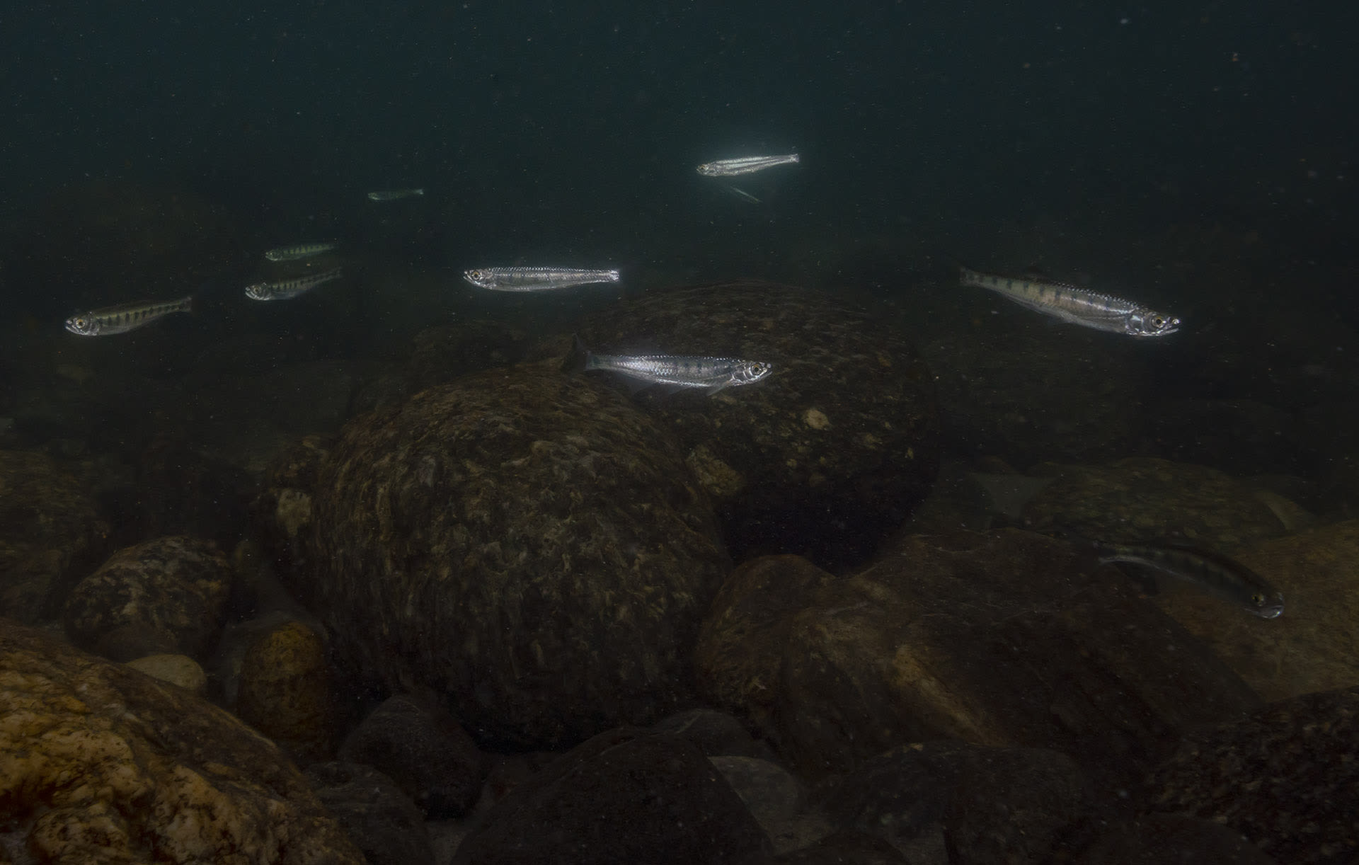 (Top) A white-bellied heron walks over boulders in the Noa-Dihing River in Namdapha Tiger Reserve. An extremely shy and critically endangered bird, it feeds on fish in clear, fast-flowing rivers. (Above) Not only does Arunachal Pradesh have the highest forest cover for any state in India, but it is also brimming with many large and small rivers that provide the necessary habitat for thousands of plants, animals and fish such as these Barilius vagra that the herons eat. Photos: Sagar Gosavi (top), Dhritiman Mukherjee (above)